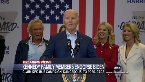 Each of the network evening newscasts delighted in reporting that the Camelot Cavalry, if you will, had come to the aid of President Joe Biden in Philadelphia. The Kennedy family joined Biden on stage to denounce their brother who is also running for president.