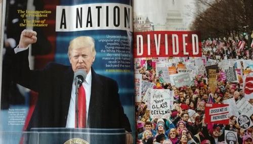 People magazine has celebrated the two Barack Obama inaugurations, but they clearly loathe Donald Trump. In the February 6 edition, there's only a tiny mention on the cover of a "special report" on "The Inauguration & Women's March." Inside the magazine on pages 52 and 53, there's a full-page picture of President Trump with a fist raised and a full-page picture of the Women's March (with a…