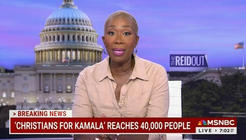 MSNBC’s Joy Reid is terrified of religion intersecting with politics and is constantly worrying on The ReidOut about the threat of “Christian Nationalism.” On Wednesday, though, she found an exception for Kamala Harris supporters who mix religion and politics because they are like the “Christian pastors who led the civil rights movement.”
