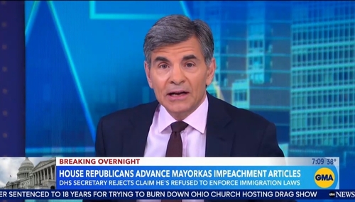 After having been indifferent toward the House Republican push to impeach Homeland Secretary Alejandro Mayorkas, the “big three” of ABC, CBS, and NBC turned up the kvetching on Monday night. That continued Tuesday on their flagship morning news shows with gripes about the “splitscreen” of a “historic” impeachment while the Senate’s “work[ing] with” him on the border and how, in turn, the…