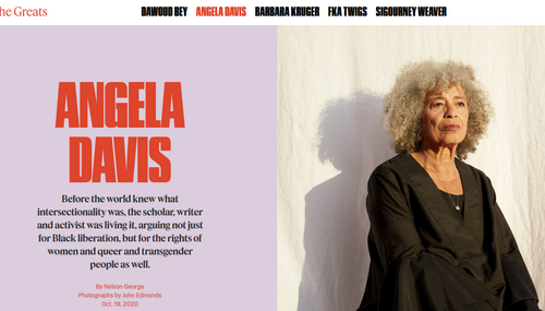 Every year or so the New York Times offers a nauseatingly hagiographic profile of communist Angela Davis. This time it appeared in the paper’s Sunday insert T Magazine, as part of “The Greats” issue.