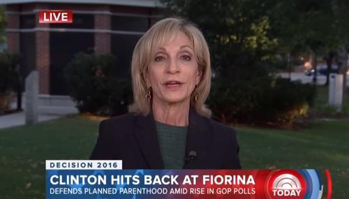 On Friday’s NBC Today, co-host Savannah Guthrie proclaimed: “Hillary Clinton hitting back at another Republican candidate, Carly Fiorina. She went after Clinton several times during the debate.” In the report that followed, correspondent Andrea Mitchell noted how Fiorina “lit up the debate stage by partly targeting Hillary Clinton, the most famous woman in American politics.”