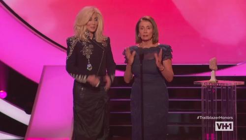 In a display of female dinosaur solidarity, pop culture matriarch Cher sang the praises of fellow septuagenarian progressive Nancy Pelosi during Wednesday night’s VH1’s Trailblazer Honors.