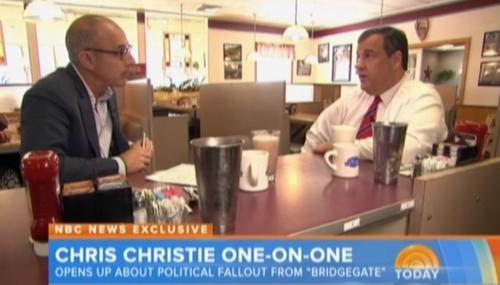 In a Wednesday interview with New Jersey Governor Chris Christie – aired in full on Thursday morning – NBC's Today co-host Matt Lauer grilled the potential 2016 contender on the year-old Bridgegate controversy: "...we could be talking during a week where indictments could be handed down in what has now become known as Bridgegate....How much, in real terms, has Bridgegate tarnished you Governor?"
