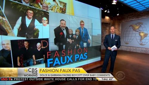 ABC, CBS, and NBC's morning newscasts on Monday all touted the apparent "backlash" and "firestorm" against Italian fashion designers Domenico Dolce and Stefano Gabbana for their support for the traditional family and condemnation of in-vitro fertilization and surrogate motherhood. The programs all spotlighted how homosexual musician Elton John called for a boycott of the duo's label, and how…