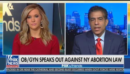 The weekend editions of Fox and Friends on Fox News Channel spent a substantial amount of time highlighting the "outcry" over an "extreme' new law recently signed by New York Democratic Governor Andrew Cuomo that would allow abortions to be performed all the way up until right before birth. The weekend anchors even hosted an OB/GYN who argued that an abortion to save a woman's life would never be…