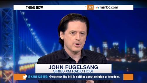 It was a Friday hatefest against Republican Governor Bobby Jindal and other opponents of same-sex marriage as liberal comedians John Fugelsang and Dean Obeidallah joined substitute host Michael Eric Dyson on The Ed Show to spew vitriol because of the Louisiana Republican's decision to back a religious freedom bill in his home state.