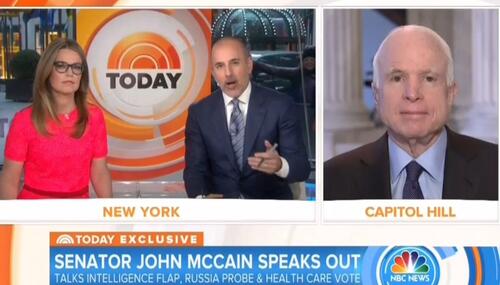 During an interview with Senator John McCain on Thursday’s NBC Today, co-host Matt Lauer could not contain his enthusiasm for the idea that the politically-charged congressional investigation into supposed ties between the Trump campaign and Russia could somehow bring down Donald Trump’s months-long presidency: “Do you think that when all of those shoes drop, that they may mortally wound this…