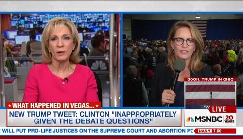 On MSNBC Live Thursday afternoon, campaign correspondent Katy Tur reported from a Donald Trump rally, when she started arguing with what Trump was saying on stage about WikiLeaks. Anchor Andrea Mitchell urged her to explain how Trump was wrong and stressed that there had been no “collusion” between former CNN analyst turned DNC chair Donna Brazile and Hillary Clinton ahead of a Democratic primary…