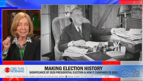 CBS This Morning hosts on Monday brought on liberal historian and media pundit Doris Kearns Goodwin to discuss what she and other journalists deeply hope for: That election day on Tuesday will be like 1932 and the landslide Democratic win of that year.