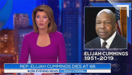 Elijah Cummings, the late Maryland Democratic congressman who passed away due to health complications Thursday, was the son of sharecrop farmers, became civil rights icon, and served for decades in the House of Representatives. But CBS Evening News boiled his life achievements down to largely what he was doing the last few years of his life: battling President Trump.