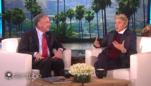 In a predictably softball interview with Democratic vice presidential nominee Tim Kaine set to air on Wednesday, talk show host and Hillary Clinton superfan Ellen DeGeneres began the friendly chat by gushing: “Well, first of all, thank you for everything you have been doing for a long, long time.”