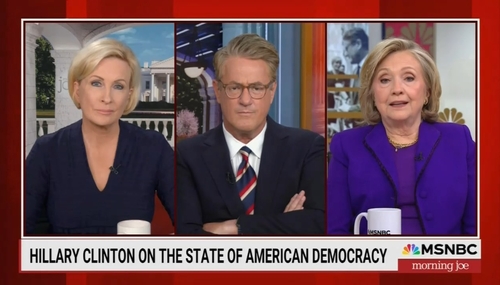 Hillary Clinton was the big guest Thursday on MSNBC's Morning Joe, and unloaded all the "Trump is Hitler" talk (goaded by Joe) and the hypocritical notes on Trump squashing stories about alleged sexual escapades.