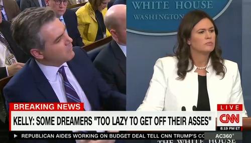 Soopermexican at The Right Scoop arrived first at the latest example of Jim Acosta banging a can against Team Trump on Tuesday night for describing some "Dreamers" as too lazy to apply for DACA status to prevent them from deportation. Chief of staff John Kelly told The Washington Post some were "too lazy to get off their asses." This sounds designed to get Acosta's goat.