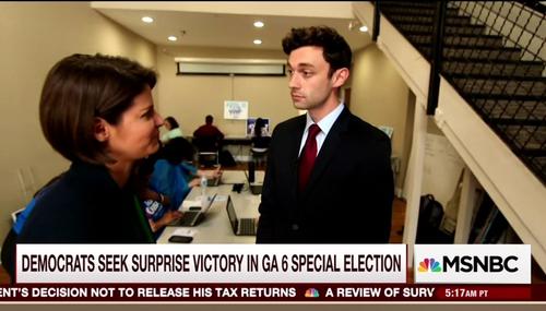 After the networks spent Monday hyping Georgia Democratic candidate Jon Ossoff as the Democrats’ secret “hope,” to flip the state’s formerly Republican-held seat, it was cable news’ turn to obsess over the 30-year-old candidate. MSNBC went all out promoting Ossoff on Tuesday as their “hero” who could take over the Congressional seat, recently vacated by HHS Secretary Tom Price.