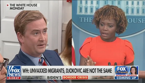 White House Press Secretary Karine Jean-Pierre had quite the Monday as, near the end of an otherwise lackluster briefing with little in the way of pressing exchanges, Fox’s Peter Doocy leveled some basic questions about a double standard on the border and the coronavirus that left Jean-Pierre spinning her wheels.