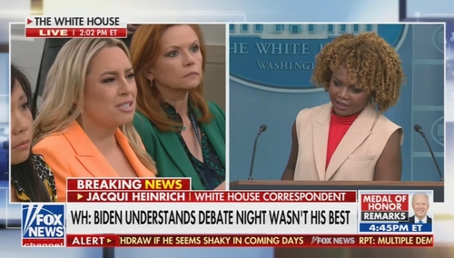 With it being summer and the first presidential debate only eight days away, President Biden has been and will soon go into hibernation with trips to Rehoboth Beach, Delaware and Camp David in Maryland, leaving only Monday and Tuesday for White House press briefings. However, the press corps made it count with hardballs and softballs on what the ever-inept Karine Jean-Pierre called “cheap…