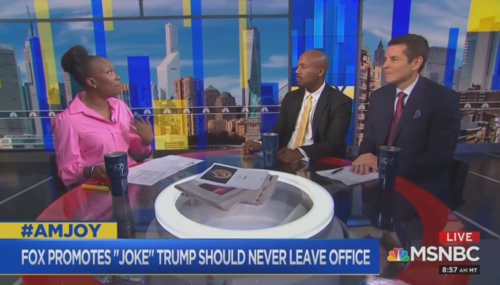 Paranoia was striking deep on the set of AM Joy today. Host Joy Reid devoted a segment to a discussion of the supposedly serious possibility that President Trump would refuse to leave office after two terms, the constitutional limit of the 22nd Amendment notwithstanding.