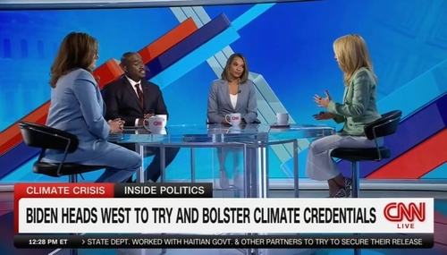 The cast of CNN’s Inside Politics reacted to President Biden’s interview with The Weather Channel on Wednesday by claiming that “he’s kind of centrist” on environmental matters while also fact-checking him from the left.