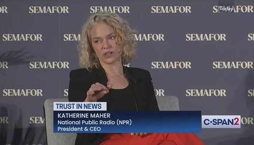 NPR CEO Katherine Maher came for a 15-minute interview at a Semafor summit on "trust in media," but it was a softball session. Instead of being pressed on NPR's liberal tilt, Semafor reporter Maxwell Tani was incredibly vague: "What have you done in your first year to build or restore trust in NPR?" I was in the room, and suppressed the desire to yell about the answer (and the question).