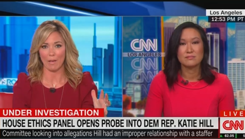 Now that she’s resigning, all three networks on Monday covered the fall of Congresswoman Katie Hill, a Democratic “rising star” caught up in a weird sex scandal involving threesomes and a Nazi-era tattoo. MSNBC, which had been ignoring the controversy, also finally got around to it. The married Hill allegedly had an inappropriate relationship with a congressional staffer (which she denies) and…
