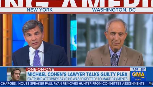 Who better than former Bill Clinton operative Lanny Davis to talk with former Bill Clinton operative George Stephanopoulos about Michael Cohen pleading guilty? Davis appeared on all three networks, Wednesday morning. No one mentioned Davis’s long history of Democratic activism. However, this connection was most egregious when Good Morning America’s Stephanopoulos interviewed him.