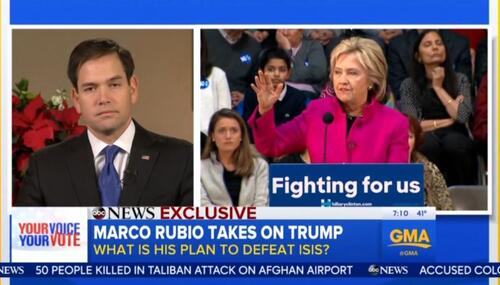 Former Bill Clinton operative George Stephanopoulos on Thursday interviewed Marco Rubio and demanded the Republican listen to a clip of Hillary Clinton sneering that all the GOP contenders are as bad as Donald Trump. Following a comment by the senator on the importance of refocusing the debate on terrorism, the Good Morning America co-host pounced, “On that issue Secretary Clinton is making the…