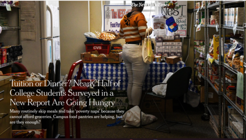 The New York Times was the toast of the Democrats for an article on an opinion survey with this provocative title: "Tuition or Dinner? Nearly Half of College Students Surveyed in a New Report Are Going Hungry. Many routinely skip meals and take ‘poverty naps’ because they cannot afford groceries." National Review tore this survey apart.
