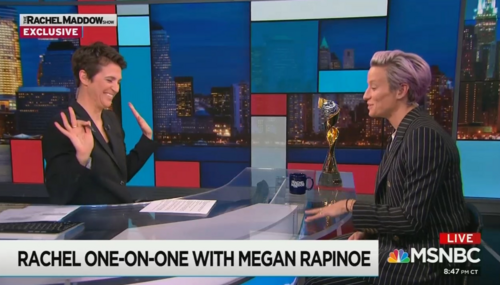 In a predictably fawning interview with Women’s World Cup soccer champion and left-wing activist Megan Rapinoe Tuesday night, MSNBC host Rachel Maddow hailed the athlete for being “more and more articulate in terms of using the platform that you’ve got to say what you think ought to be happening in the world.” The liberal anchor even joked about Rapinoe possibly running for president.