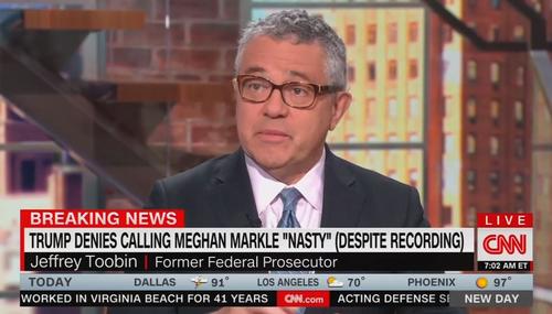 On Monday morning, President Trump kicked off his state visit to the UK. CNN New Day provided live coverage of the event, and was sure to bring up the an interview with The Sun in which Trump called Meghan Markle “nasty” in response to comments Markle made about Trump. When Trump denied that he called Markle nasty, Toobin stated that the U.S. was now in a “1984-like scenario.”