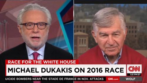 As former Massachusetts Governor and 1988 Democratic presidential nominee Michael Dukakis appeared as a guest on Friday's Wolf show, CNN host Wolf Blitzer cued up the Massachusetts liberal to slam the current Republican presidential candidate field: "I remember covering your campaign in 1988. You always insisted on running a pretty clean campaign, a strategy some say may have cost you the race.…