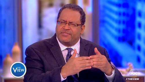 Georgetown professor and contributor to the New York Times Michael Eric Dyson appeared on Wednesday’s The View to promote his new book, Tears We Cannot Stop: A Sermon to White America. ABC gave the former MSNBC analyst plenty of time to talk about his favorite topic: racist white Americans. Dyson called out President Trump in particular as the “manifestation” of white America’s “refusal to grow…