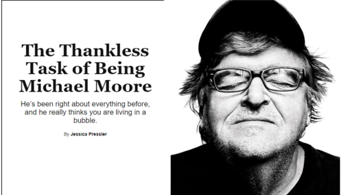 Vulture would have us believe that being Michael Moore a “thankless task.” But what’s so tough about being a wealthy socialist who sold his lake house for $5.2 million in 2015? How hard is it doing agitprop for communist Cuba’s health system, or making movie after intellectually bankrupt movie about how lousy America is? Certainly his daily grooming habits can’t be what you’d call oppressive.
