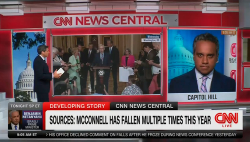 Thursday morning, after Senator Mitch McConnell (R-KY) had an unfortunate incident where he was unable to speak for a few moments at a press event, CNN News Central featured a segment where they fretted about McConnell’s age despite him being as old as President Biden. They discussed this incident as it could have been related to several of McConnell’s past signs of aging, such as…