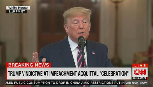 CNN showcased for all to see Thursday afternoon its undisputed position as leader of the opposition party and hate for President Trump, lashing out at the post-impeachment speech as an “angry,” “dark,” “disturbing,” “mean-spirited,” “poisonous,” “spiteful,” and “vindictive” “set of remarks” by a man in “a dark place” and “deep psychological distress.”