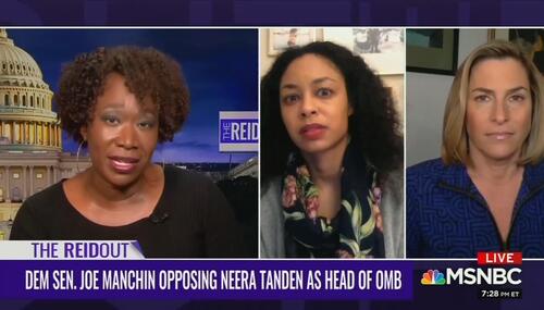 With OMB director designee Neera Tanden’s prospects looking grim, MSNBC’s The ReidOut spent Tuesday bitterly lashing out at Senator Joe Manchin (D-WV) as racist and sexist to oppose her (and any other non-white Biden nomination) and collaborate with “hypocritical,” “overtly” political, and “ugly” Republicans holding Americans “hostage” with Senate as a “structural disadvantage” to progress.…