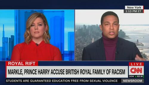 Reacting to the Sunday interview Prince Harry and Meghan Markle did with Oprah, Don Lemon joined CNN Newsroom Monday to declare the entire British monarchy is self-evidently racist and that Markle is just latest black person to be unfairly condemned by white people who are "not relevant anymore."