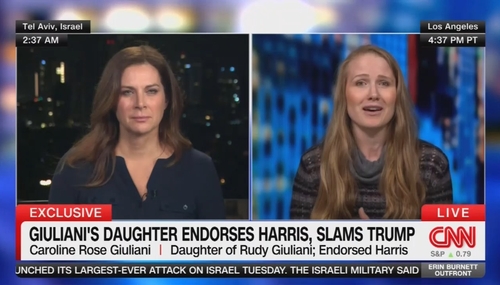In the last couple of days, CNN hosts Erin Burnett and Sara Sidner hyped former Republican Mayor Rudy Giuliani's daughter publicly endorsing Democrat Kamala Harris for President, giving the impression that she is a Republican party defector, even though she has a long history of supporting Democrats for President and liberal causes.