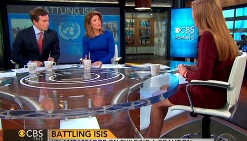 Starting off a gentle interview with United Nations Ambassador Samantha Power on Thursday's CBS This Morning, co-host Norah O'Donnell began to pitch what could have been a hardball question on the Obama administration's slow response to violence in Syria giving rise to the ISIS terrorist threat, but instead tossed out this: "When you first became ambassador, you pushed for air strikes in Syria.…