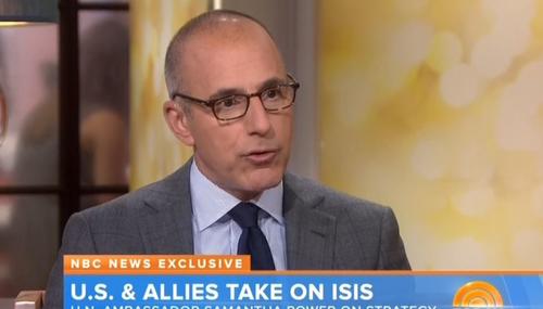 In an interview with United Nations Ambassador Samantha Power on Thursday's NBC Today, co-host Matt Lauer pointed out President Obama contradicting himself on fighting terrorism: "Many times during his presidency, the President has said that the tide of war is receding....But yesterday, he talked about this fight against ISIS and he said, 'The only language understood by killers like ISIS is the…