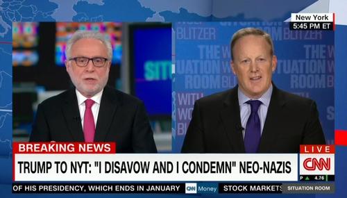 On Tuesday’s The Situation Room on CNN, anchor Wolf Blitzer joined the rest of the media in spending endless hours harping on a gathering of 200 white supremacists expressing their support for Trump. In an interview with RNC strategist Sean Spicer, Blitzer repeatedly asked Spicer why Trump hadn’t come out in a video to denounce their support. Eventually Spicer snapped and asked Blitzer: “Should…