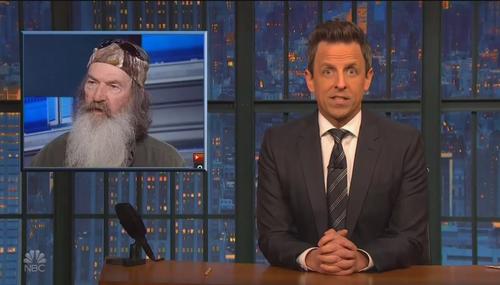 NBC Late Night host Seth Meyers devoted one of his "A Closer Look" sermons to touting "Medicare For All" and mocking President Trump and Duck Dynasty patriarch Phil Robertson for opposing socialism. Meyers warned "Scare mongering about socialism might have worked a few years ago, but it's lost its punch now that Republicans have used it over, and over, and over again."