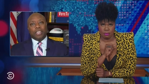 Leslie Jones kicked off her second stint as temp host of Comedy Central’s The Daily Show on Monday by attacking Sen. Tim Scott as a “Milk Dud-looking mother[bleep]” as he ended his presidential campaign.