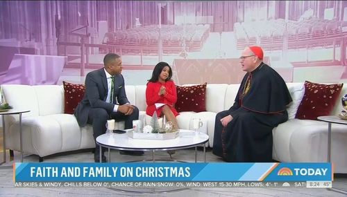 Continuing their tradition of having Cardinal Timothy M. Dolan on set to deliver a Christmas message to viewers, NBC’s Today co-hosts Craig Melvin and Sheinelle Jones talked with the archbishop of New York about Christmas being a light in the darkness for so many people and how people are never truly lonely because Jesus is in our hearts and soul.