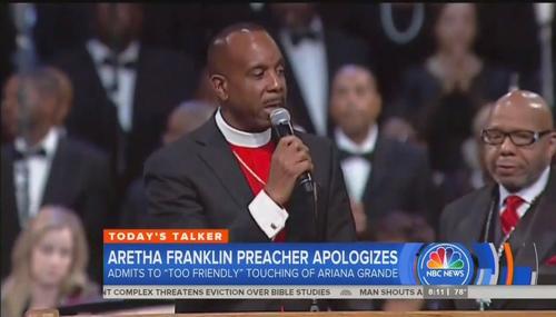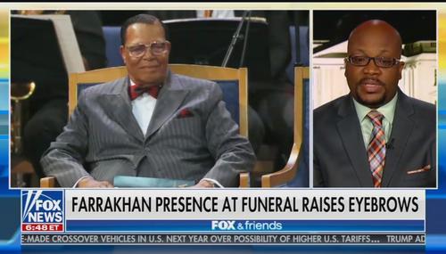 As Fox and Friends Saturday commented on the absence of media attention to National of Islam Leader Louis Farrakhan at Aretha Franklin's funeral, the other networks ignored Farrakhan, but CBS and NBC did find time to highlight complaints about one of the pastors putting his arm around singer Ariana Grande on stage and making a joke about her name.