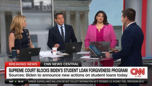 Not long after their distributing their hot takes about how the preservation of religious liberty threatens to bring back Jim Crow, the Friday cast of CNN News Central freaked that “the wheels are coming off” for people who will now have to repay their loans after the Supreme Court struck down President Biden’s student loan cancellation scheme in Biden v. Nebraska.