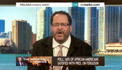 MSNBC contributor Michael Eric Dyson is no stranger to effusive, over-the-top lobbying for Barack Obama. But on Saturday, he went so far that even fellow liberal host Melissa Harris Perry couldn't believe it. Dyson called on the President to speak out more about the rioting in Ferguson, Missouri, comparing, "I'm a Christian preacher and God finally said, 'look, I can't send nobody else. I got…