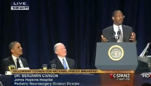 Newly-announced presidential candidate and neurosurgeon Dr. Ben Carson broke onto the national scene at a National Prayer Breakfast in 2013 when he, while sharing the same stage as the President, had the courage to rail against the deficit, political correctness, and the tax system while also standing up for religious values and advocating health savings accounts as an alternative to Obamacare.