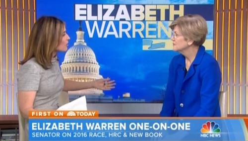 In a fawning softball interview with Democratic Senator Elizabeth Warren on Tuesday's NBC Today, co-host Savannah Guthrie spent the entire segment asking if the left-wing heroine was going to run for president, even to the point of suggesting Hillary Clinton wasn't liberal enough.