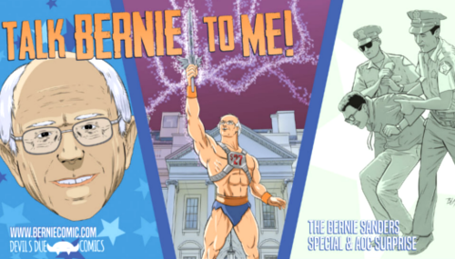 As if we don’t see 2020 presidential candidate Bernie Sanders often enough, a comic book company has decided to produce a one-shot singing the praises of the Independent Vermont senator with the curious title Talk Bernie to Me! The issue will feature three covers, with one of Sanders’ smiling face, another with him as He-Man from the Masters of the Universe animated series holding up a sword in…